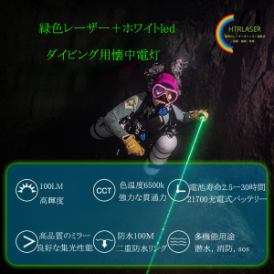 - 製品名: 水中信号灯100mまでの水深で使用できるダイビング専用led付きレーザーポインター視認性の高い緑色レーザー